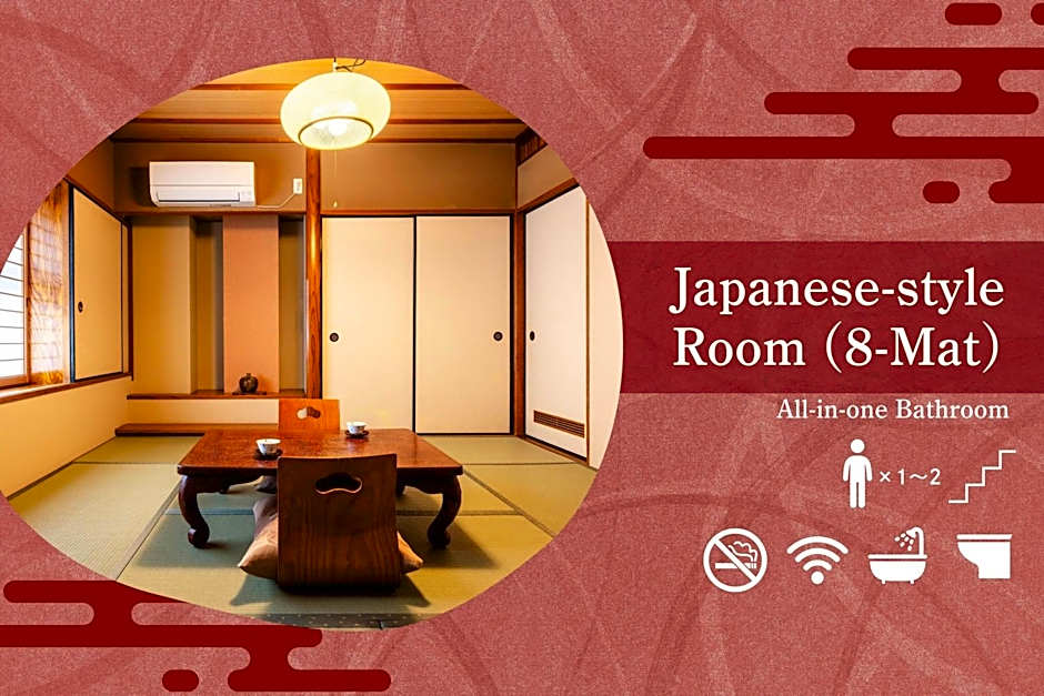 The family room includes a private bathroom, well-fitted with a bath, a shower, a bidet, a hairdryer and slippers. The air-conditioned family room features a TV, tatami, a safe deposit box, yukata as well as a quiet street view. The unit has 4 futons.